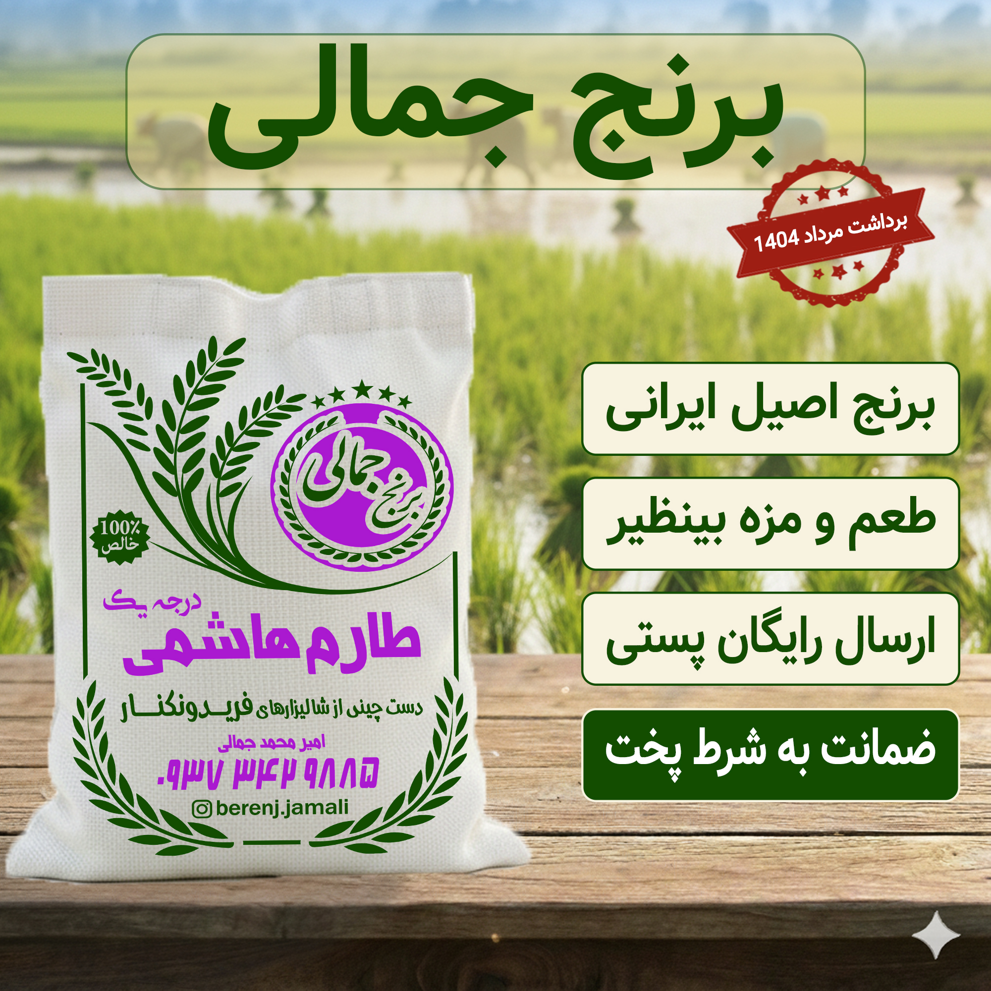 برنج کشت دوم درباری فوق معطر فریدونکنار برنج جمالی ۱۰کیلوگرم