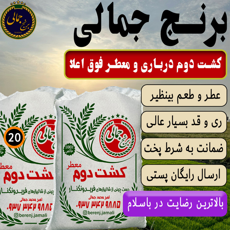 برنج کشت دوم درباری و فوق معطر فریدونکنار برنج جمالی 20کیلوگرم