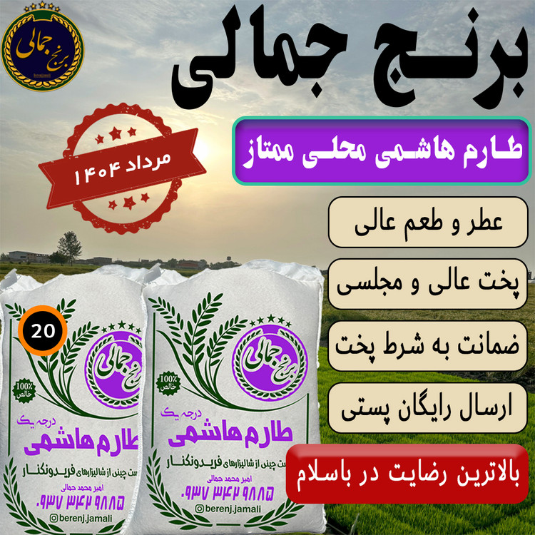 فروشگاه برنج جمالی با سالها تجربه در تهیه و عرضه مستقیم برنج از مزارع فریدونکنار، این محصول را با کیفیت تضمینی و قیمت مناسب ارائه میدهد. اگر بهدنبال برنجی سالم، خوشعطر و خوشپخت هستید، همین حالا سفارش دهید.
