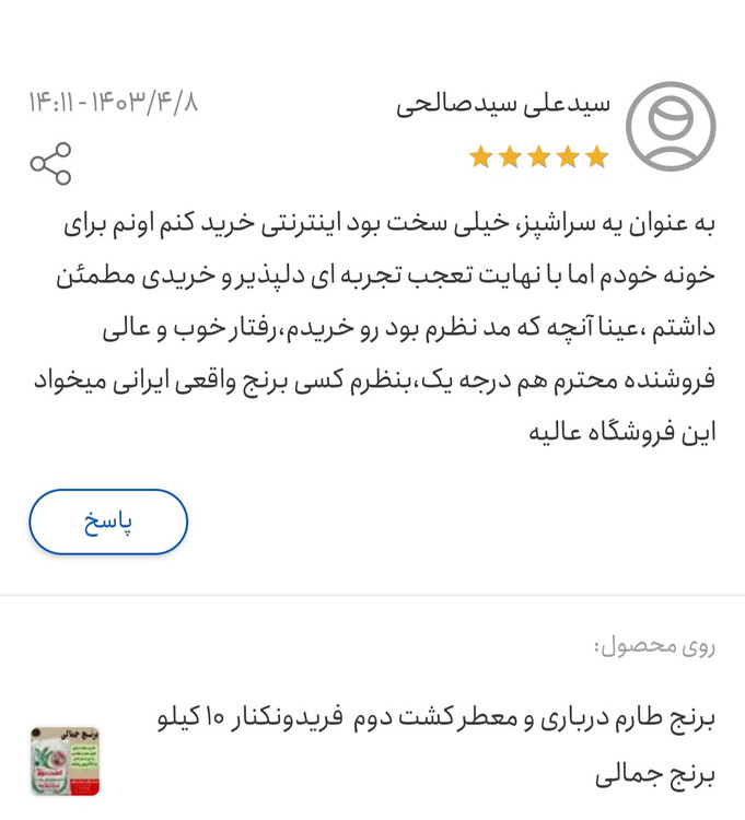 برنج کشت دوم درباری فوق معطر فریدونکنار برنج جمالی ۱۰کیلوگرم